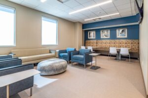 “Colquitt Regional really invests in the furniture they choose and how it supports staff and patients,” says Amy Miller, senior furniture specialist at TMP. “For example, they upgraded guest seating with plush chairs and installed high-quality classroom seating. They invest in the comfort of their users.”